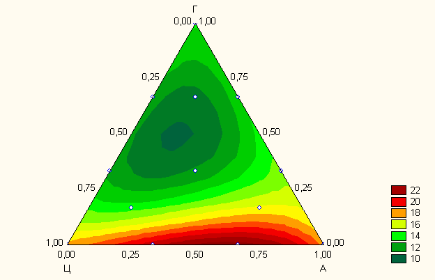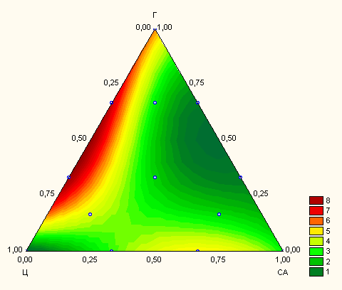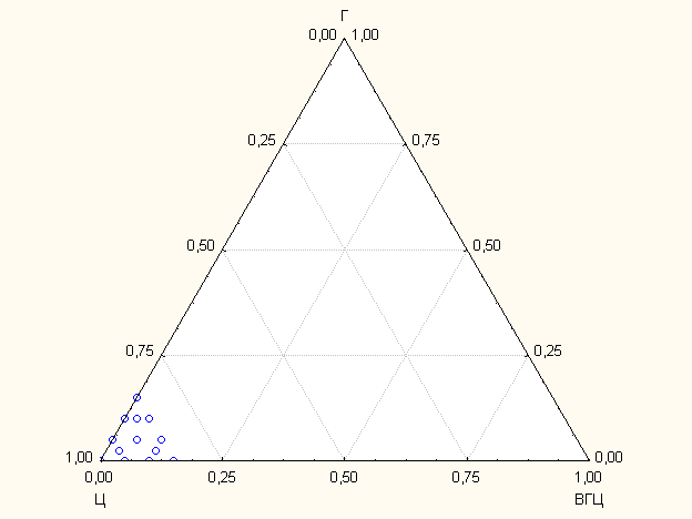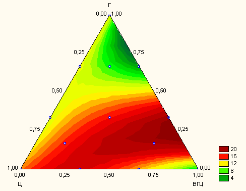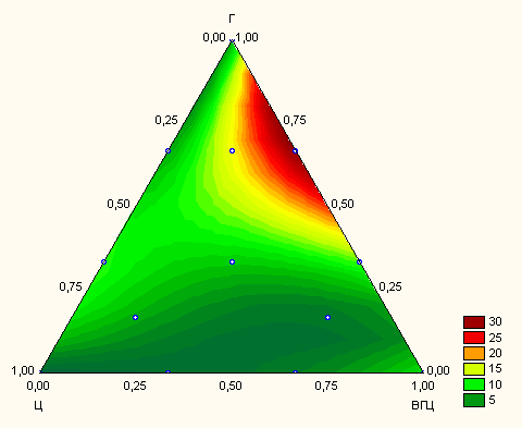 Рис. 1 Общий вид локальной области проведения эксперимента, где Ц – содержание цемента, ВГЦ – содержание высокоглиноземистого цемента, Г – содержание гипса, усл. ед.
