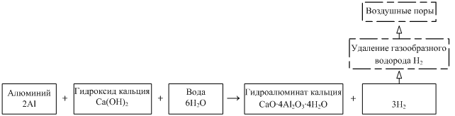 Ячеистый бетон изготавливается из вяжущих, песка или золы, газообразователя и воды. Вяжущие — известь и цемент — содержат CaO, который имеет решающее значение для процесса. Песок или зола вводит в процесс SiO2. Из компонентов CaO, SiO2 и Н2О в автоклаве при воздействии высокого давления и высокой температуры образуется новый минерал — тоберморит (С4S5H5).
