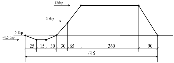 (1) от –0,5 бар до 0 бар — 30–45 мин;