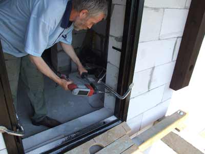 Тщательное уплотнение по всему периметру проема требует заполнения пеной и пространства под стальными лапками. После затвердения выступающие излишки пены, как обычно, срезаются острым ножом. |