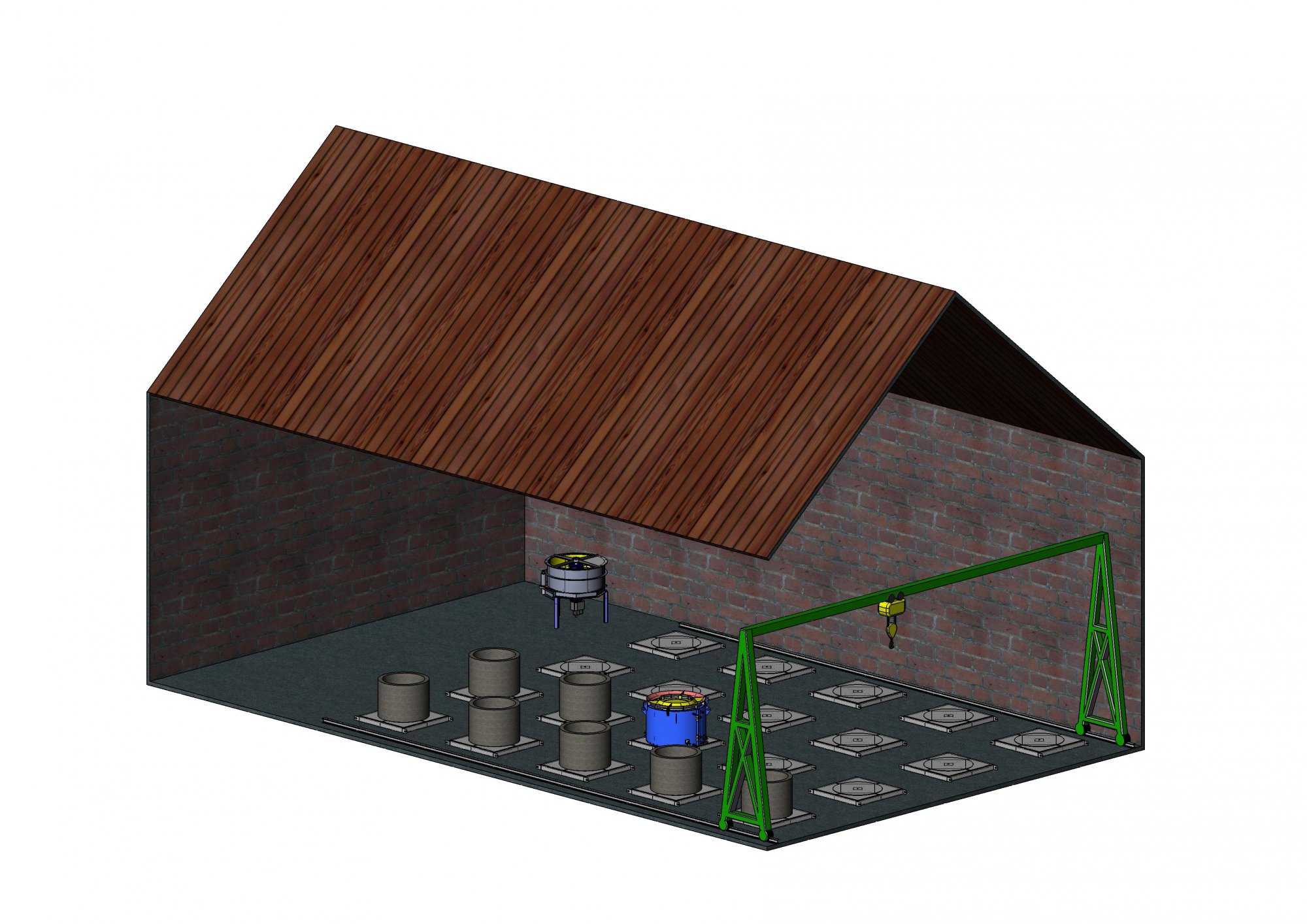Итого сумма вложений в оборудование 746800. С данным набором оборудования и расходными материалами можно практически сразу приступать к производству. Причем уже сразу решена одна из самых больших проблем возникающих при организации подобных производств – заполнение формы кольца раствором. Раствор готовится в бетоносмесителе и транспортером подается в передаточную емкость, которая кран-балкой перемещается над формами и подает туда раствор. Таким образом при подобной схеме организации сразу решается самая серьезная задача – подача раствора в кольца.