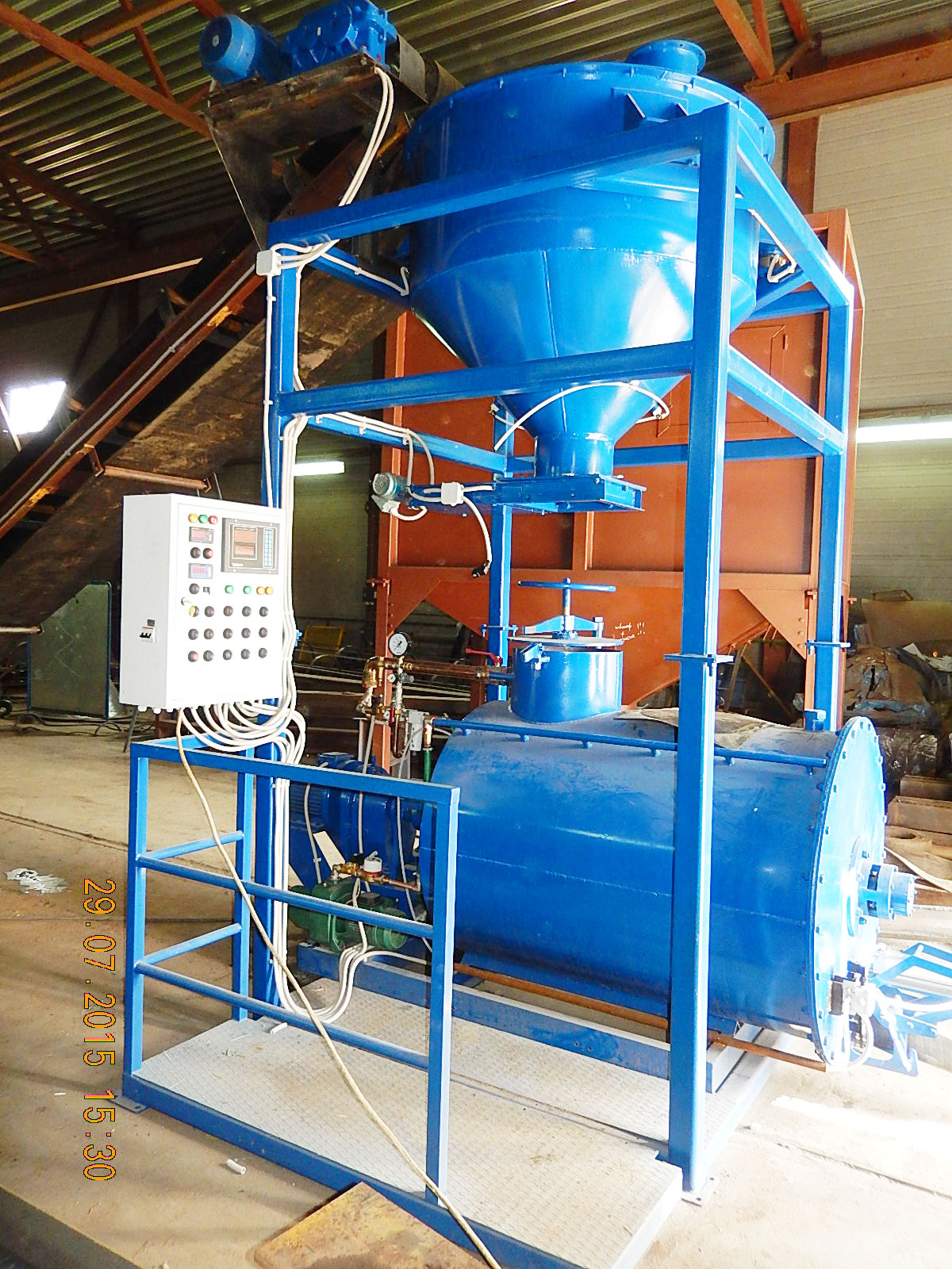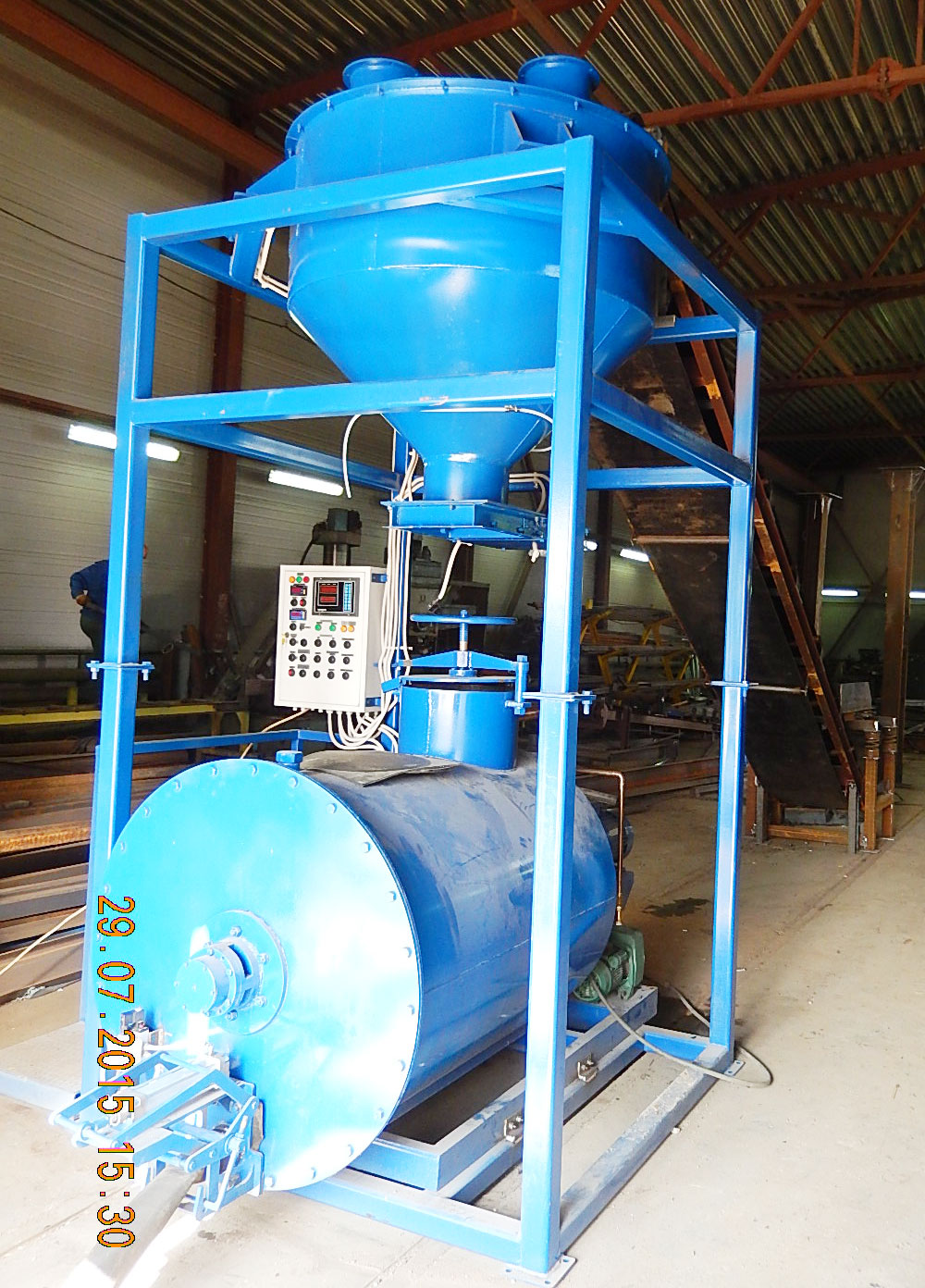 Данный комплекс подает в смеситель нужное количество песка, цемента и воды в автоматическом режиме. После этого, также автоматически, производится пенобетон. Управление подачей песка и цемента происходит с центрального пульта, где сразу сделана и силовая часть. То есть надо просто подключить транспортеры и шнеки и система сразу ими управляет.