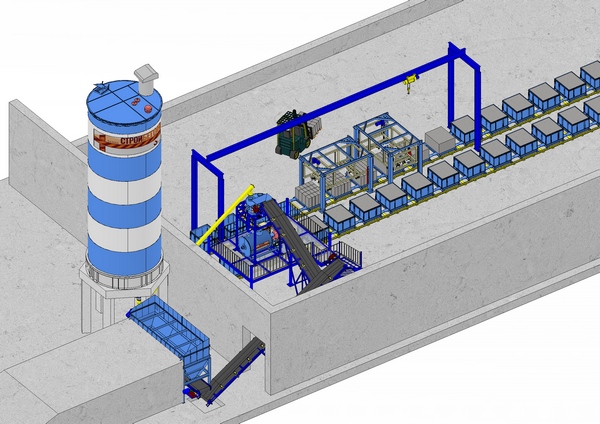 Специально под помещение заказчика была разработана оптимальная схема подачи и хранения сыпучих компонентов - песка и цемента.