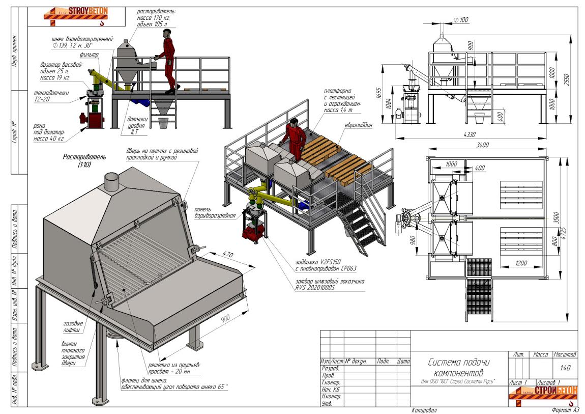 Базовая конструкция растаривателя представляет модуль растаривания на ногах с удобной высотой подачи и систему подачи материала вниз. Предусмотрена защита от крупных комков.